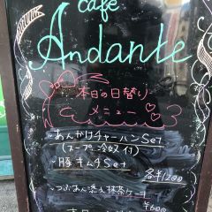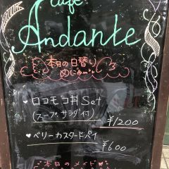 | 営業時間 | 平日15時〜22時。土日祝12時〜22時。不定期で営業時間が変わる場合がございます。詳しくは下記スケジュール表をご確認下さいhttp://andante.jp/ftschedule221/schedule.cgi | ||||||||||||||
