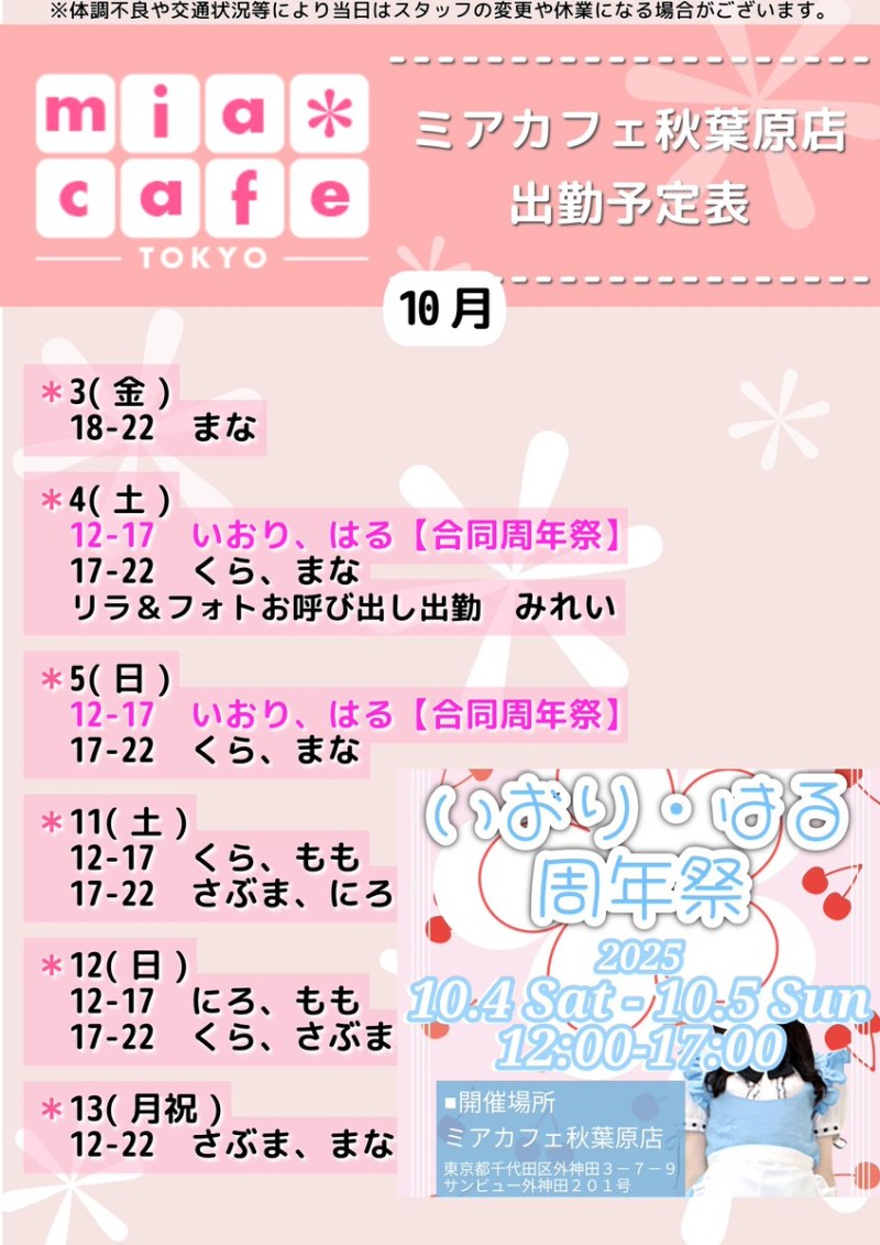 🎀10月4日(土)【🎂いおり・はる 合同周年祭🎂】