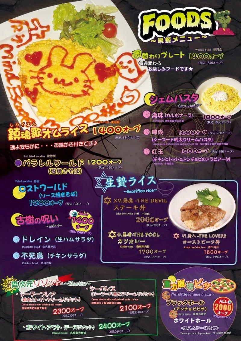 | 営業時間 | 【営業時間】 平日17:00〜23:00 金・土・祝前日17:00〜翌5:00 日祝17:00〜23:00 水曜定休日 | ||||||||||||||