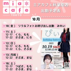 | å¶æ¥æé | âãã¢ã«ãã§æ±äº¬åºïŒã¡ã€ãã«ãã§ïŒhttp://www.mia-cafe.com/ãâ â¡å¹³æ¥ãæïœéãïŒïŒïŒïŒïŒïœïŒïŒïŒïŒïŒ â¡åæã»æ¥æã»ç¥æ¥ãïŒïŒïŒïŒïŒïœïŒïŒïŒïŒïŒ â å®äŒæ¥ããªãïŒ2019幎1æããå®äŒæ¥å»æ¢ïŒ â¡ã©ã¹ããªãŒããŒãéåºã®ïŒïŒåå ãïŒïŒïŒïŒïŒéåºã®å ŽåâïŒïŒïŒïŒïŒã©ã¹ããªãŒããŒ å¶æ¥æ¥ãåºå€ç¶æ³ã«ã€ããŠã¯ãã¡ãã http://pandaland.cutegirl.jp/mif/c_cms_csv/sch_top.php âãã¢ãªã©ïŒãã©ãæ±äº¬åºïŒæ®åœ±äŒïŒãªãã¬ïŒhttp://www.mif-lr.com/ãâ â¡å šæ¥ãïŒïŒïŒïŒïŒãïŒïŒïŒïŒïŒãã§ãããªã©ã¯ãŒãŒã·ã§ã³åºå€ã¹ã¿ãããããæé垯ã®ã¿å¶æ¥ã§ãã â å®äŒæ¥ã¯äžå®äŒïŒåºå€ã¹ã¿ãããããæé垯ã®å¶æ¥ïŒ â¡æçµåä»ãéåºã®ïŒïŒåå ãïŒïŒïŒïŒïŒéåºã®å ŽåâïŒïŒïŒïŒïŒïŒïŒïŒïŒïŒïŒè¿ã«æœè¡æéãçµããã³ãŒã¹ïŒ â»é«æ ¡çäžå¯ âæ·±å€å¶æ¥ã«ã€ããŠã¯ãå ¬åŒãµã€ãå³äžã® http://market.chu.jp/schedule1/sche37.cgi ãã¢ã°ã«ãŒãç·åã¹ã±ãžã¥ãŒã«ïŒïŒ°ïŒ£ã»ã¹ããïŒ http://market.chu.jp/schedule1/sche37.cgi?dm=1 ãã¢ã°ã«ãŒãç·åã¹ã±ãžã¥ãŒã«ïŒã¬ã©æºåž¯ïŒ ãã芧ãã ãããåç¥æ¥ã®ã¿å¶æ¥ãšãªããŸããåç¥æ¥ä»¥å€ã¯æ·±å€å¶æ¥ããããŠãããŸããã æ·±å€å¶æ¥å¯Ÿè±¡æ¥ãïŒïŒïŒïŒïŒãç¿æïŒïŒïŒïŒïŒïŒ¬ïŒïŒ¯ïŒïŒïŒïŒïŒïŒ | ||||||||||||||