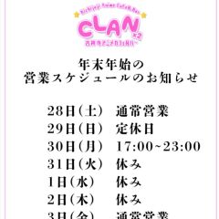 年始の営業は1/3(金)から! 来年から営業時間が19時オープンになるので! ご来店の際はお気を付け下さい! https://t.co/FqIIcfZKUA