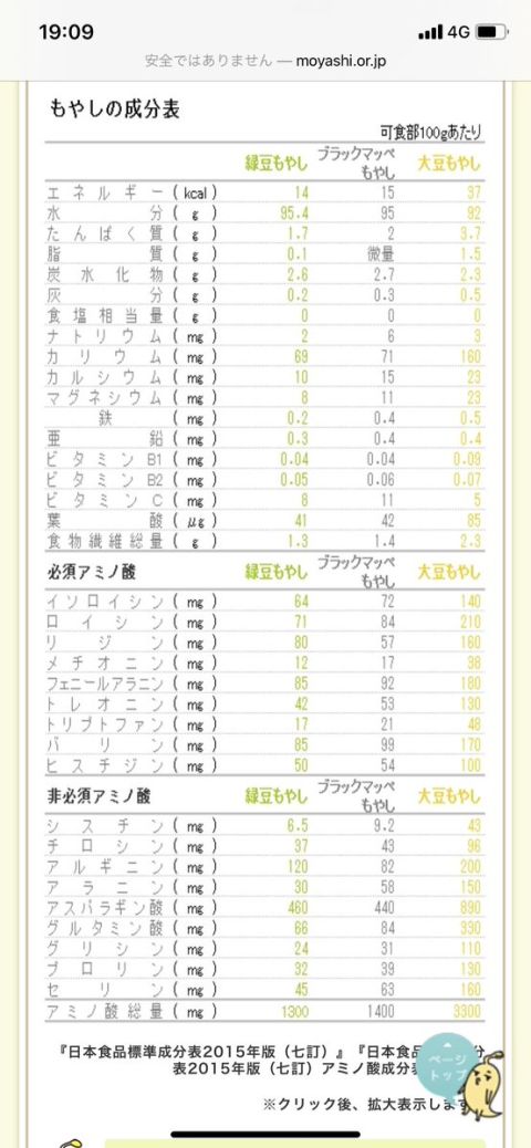 もやしの栄養分 https://t.co/WidvNxJIJS