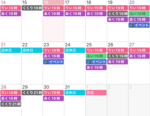 12月後半の出勤予定表です。 ★主なイベント予定 12/20~12/25 クリスマスイベント🎅 12/27~12/30 年越しそば🍜 今年も一年、お世話になりました🙇‍♀️ 来年もよろしくお願いいたします🐴 #大阪 #心斎橋 #ミナミ #コンカフェ #求人 #バイト募集 https://t.co/v0G6ikeyma